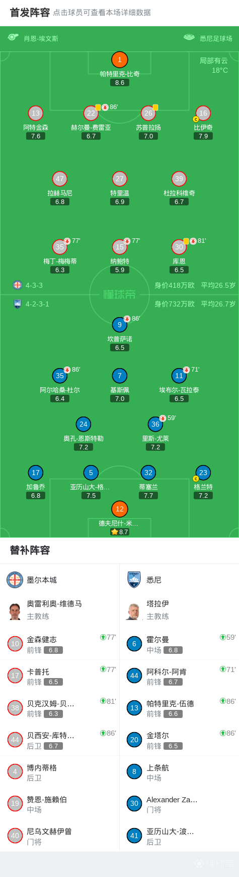 墨尔本城0-0悉尼,秋色平分战报bot @懂球帝01-03 18:33北京时间1月3日澳大利亚足球超级联赛 联赛 第11轮,墨尔本城主场对阵悉尼。最终比分墨尔本城 0-0 悉尼。点击查看本场比赛详细数据>>点击查看澳超完整积分榜>>球队阵容技术统计展开更多