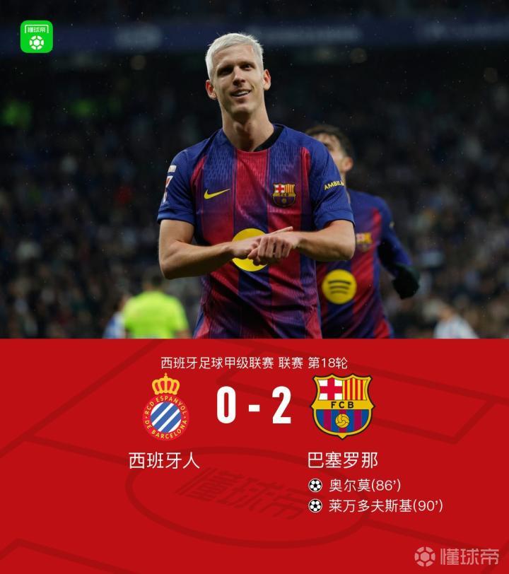 剑南春|巴萨2-0西班牙人,奥尔莫、莱万破门,加西亚献神扑