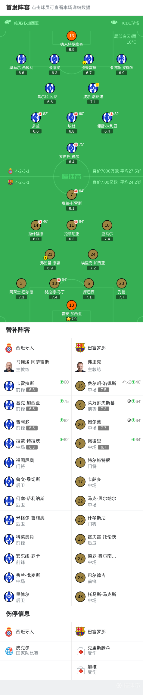 第45分钟,卡夫雷拉头球攻门撞倒埃里克-加西亚,前者面部出血