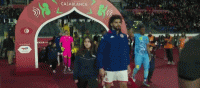 双方球员步入球场,大战即将打响
