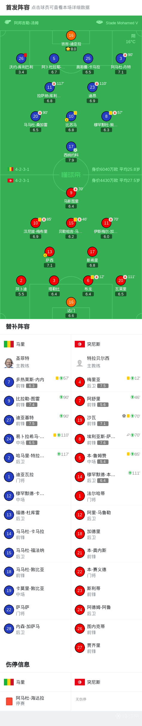 十人马里4-3点杀突尼斯晋级非洲杯8强,吉吉-迪亚拉两扑点
