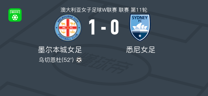 墨尔本城女足1-0悉尼女足,乌切恩杜助球队取胜