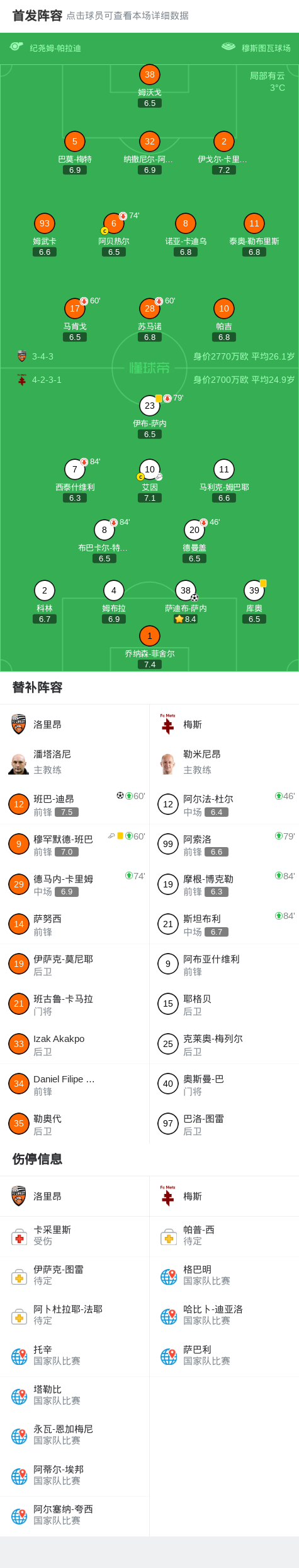 洛里昂1-1梅斯,萨迪布-萨内先拔头筹,班巴-迪昂扳平比分