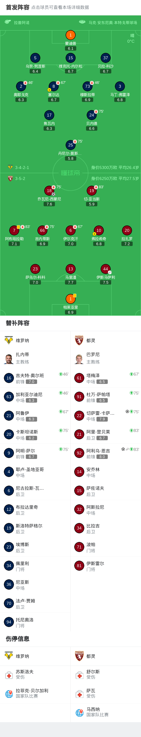 北京时间1月5日意大利足球顶级联赛 联赛 第18轮,维罗纳主场对阵都灵。都灵乔瓦尼-西蒙尼破门,切萨雷-卡萨代伊破门,阿利乌-恩吉破门。最终比分维罗纳 0-3 都灵。