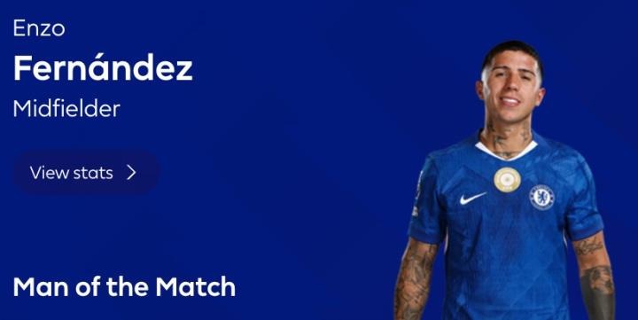 第94分钟绝平,恩佐当选曼城vs切尔西全场最佳球员ETChalmers @懂球帝01-05 03:49英超第20轮,切尔西客场1-1战平曼城,此役攻入绝平进球的切尔西中场恩佐当选全场最佳球员。此役客场对阵曼城,首发出战的恩佐在比赛第94分钟攻入扳平比分进球,帮助切尔西1-1战平对手。本场比赛打满全场的恩佐完成2次射门,抢断7次,均为全场最多。最终经过英超官网球迷投票,恩佐以49%的得票率当选全场最佳球员。展开更多