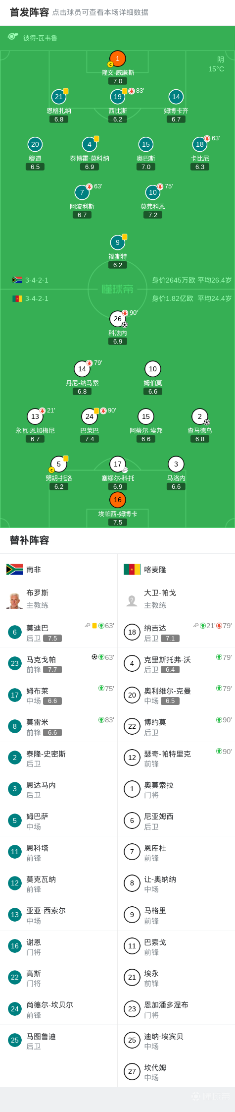 第47分钟,纳吉达传中,科法内头球破门,喀麦隆2-0