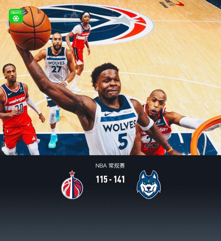 森林狼141-115大胜奇才,爱德华兹35分,戈贝尔18+14