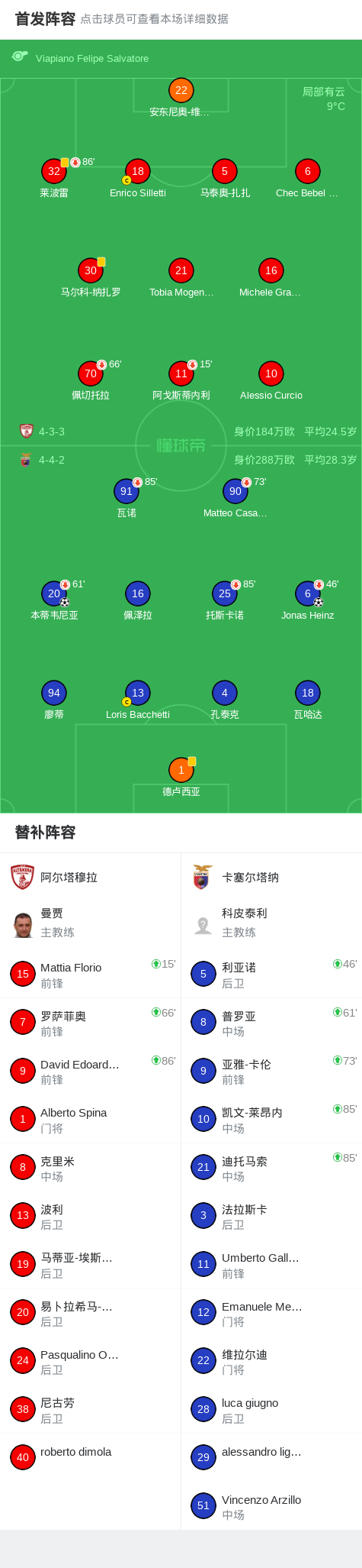 卡塞尔塔纳2-0阿尔塔穆拉取意丙3连胜,Jonas Heinz建功,本蒂韦尼亚锁定胜局