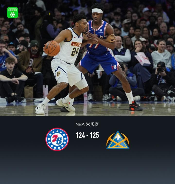 加时赛76人恩比德拿下2分,掘金皮克特拿下3分,最终76人124-125不敌掘金