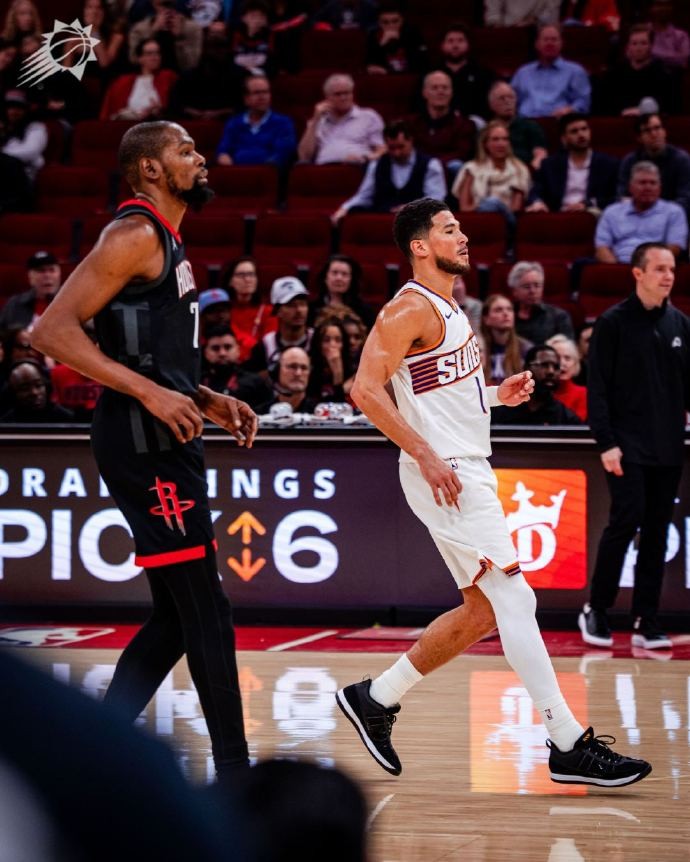 全场比赛,杜兰特得到了26分10篮板4助攻1盖帽,布克得到了27分3助攻。