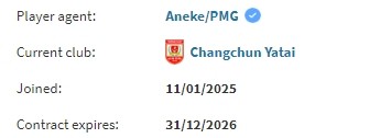 德转网站的信息显示,目前奥莫伊胡安弗、西普里安、胡安-卡米洛与长春亚泰俱乐部的合同都是到2026年12月31日。
