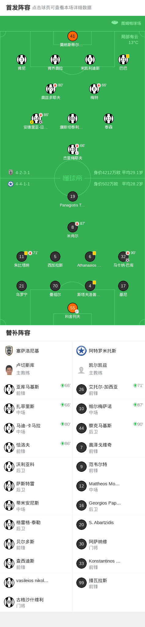 第54分钟,塞萨洛尼基球员杰里梅耶夫助攻安德里亚-日夫科维奇打入一球。