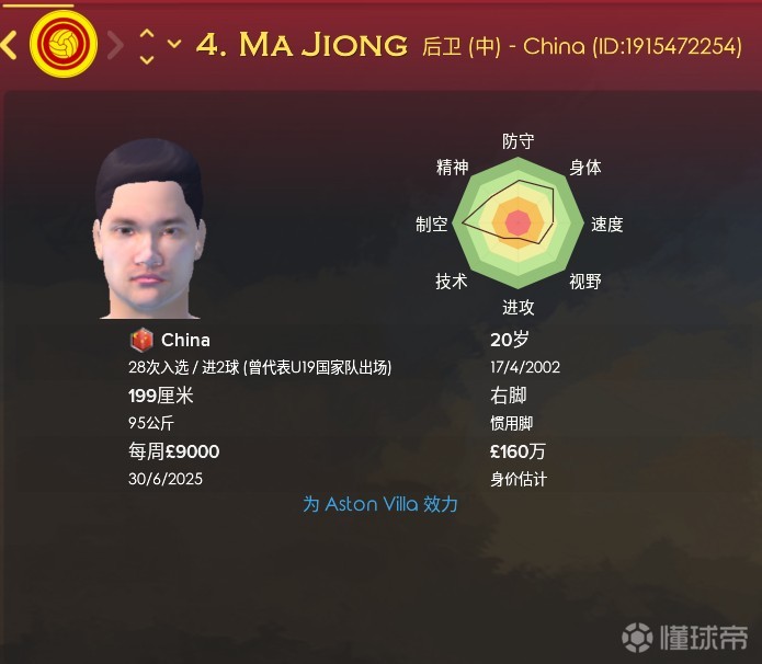 第二,就是青训,中国国家队大名单中出现了很多20岁左右的小将。能力都非常出色,有不少都是在欧洲联赛效力,比如效力阿斯顿维拉的这名中卫,马炅。
