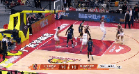 周琦左翼接球漂移三分命中