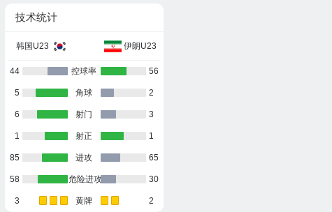 北京时间1月7日U23亚洲杯 小组赛 第1轮,韩国U23对阵伊朗U23。最终比分韩国U23 0-0 伊朗U23。
