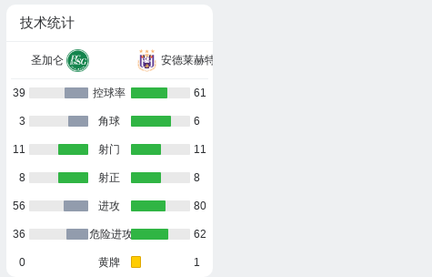 圣加仑2-1安德莱赫特,金蒂利亚破门,汤姆-加尔建功
