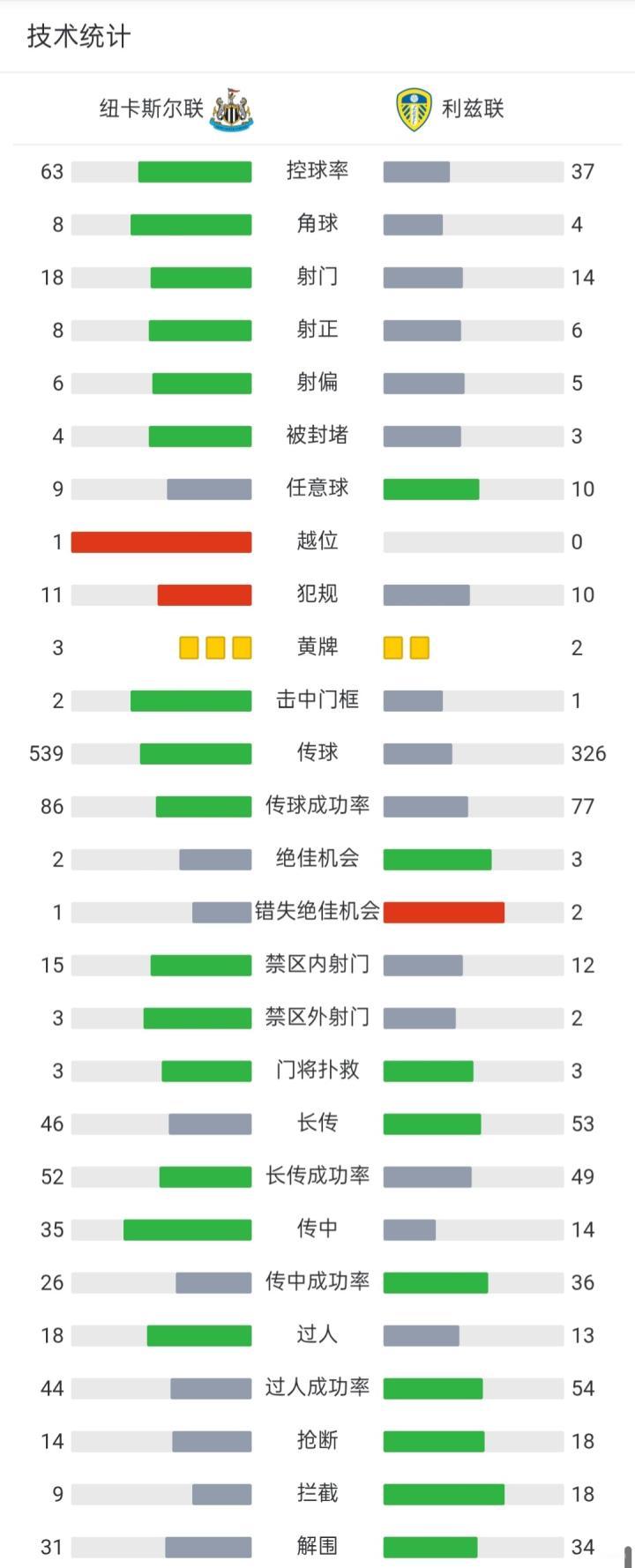 第54分钟,吉马良斯传中,乔林顿甩头攻门扳平比分,纽卡2-2利兹联