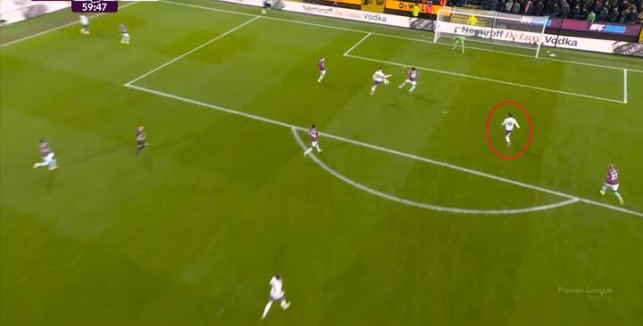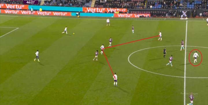 而且,攻转守的逻辑也重新发生了变化,比如这次谢什科没有接好球,立刻被伯恩利发展到边路,于是你可以看到,中场、右中卫和右后卫需要形成三人之间的轮转: