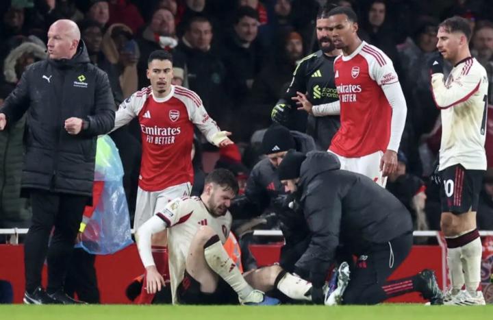 在场内接受治疗后,布拉德利被担架抬离球场,离开球场时拄着拐杖,左膝佩戴护具。