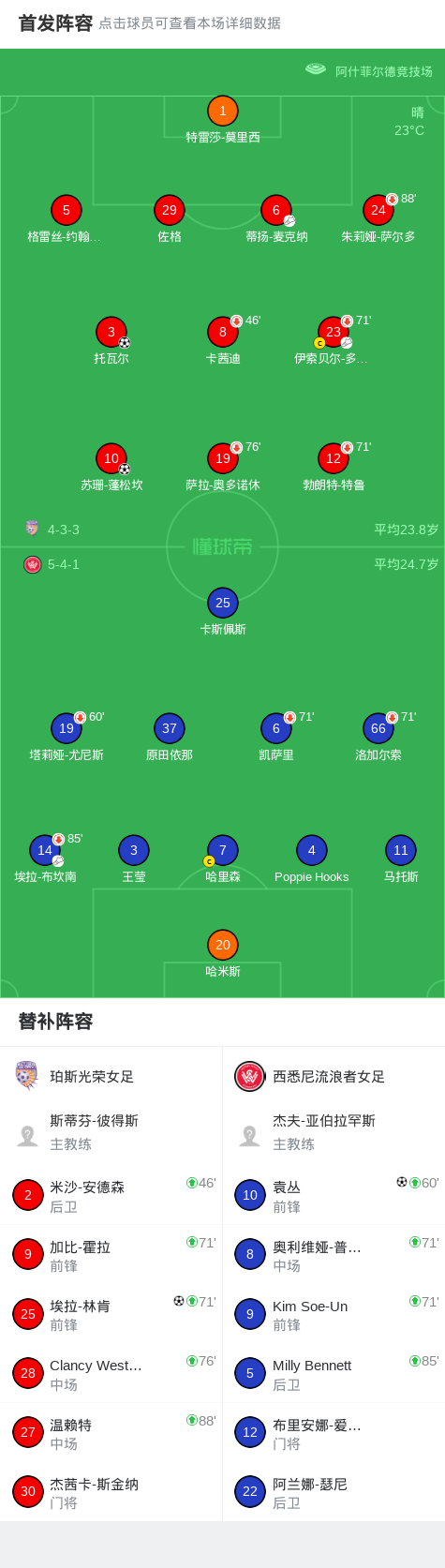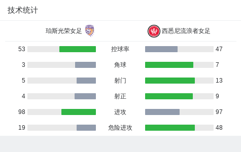 珀斯光荣女足3-1西悉尼流浪者女足,埃拉-林肯、苏珊-蓬松坎破门