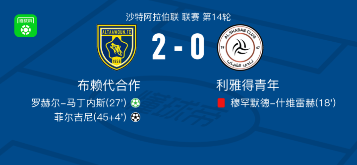 布赖代合作2-0利雅得青年,罗赫尔-马丁内斯破门,菲尔吉尼锁定胜局