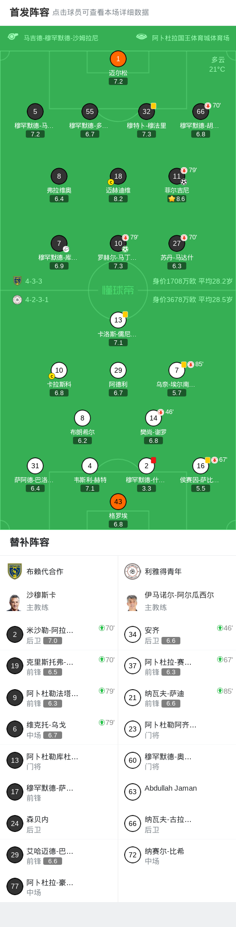 上半场补时第4分钟,布赖代合作球员穆罕默德-库维基比助攻菲尔吉尼打入一球。