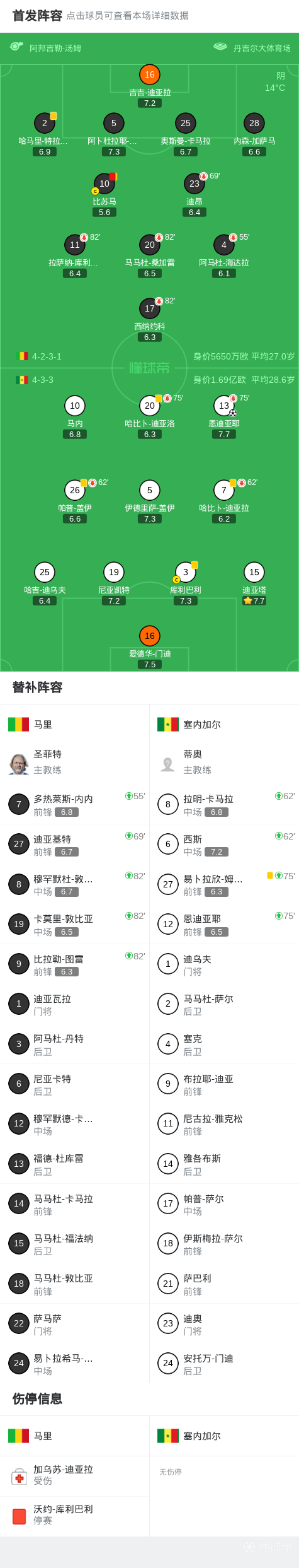 塞内加尔1-0十人马里晋级四强,恩迪亚耶制胜,比苏马染红