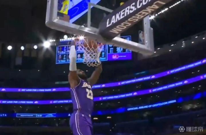 快攻之王,詹姆斯反击中晃过对手后还瞪了一下对方再扣篮