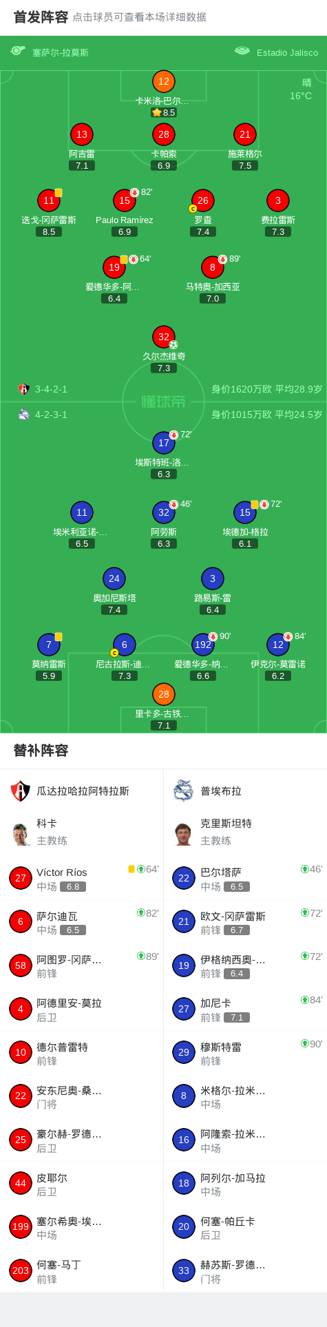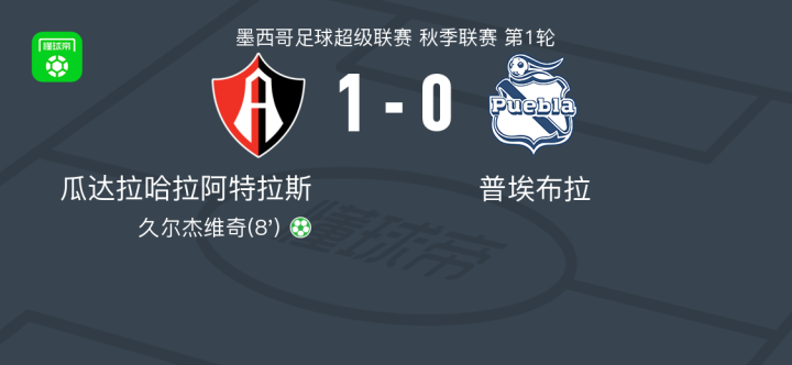 瓜达拉哈拉阿特拉斯1-0普埃布拉,久尔杰维奇点射制胜