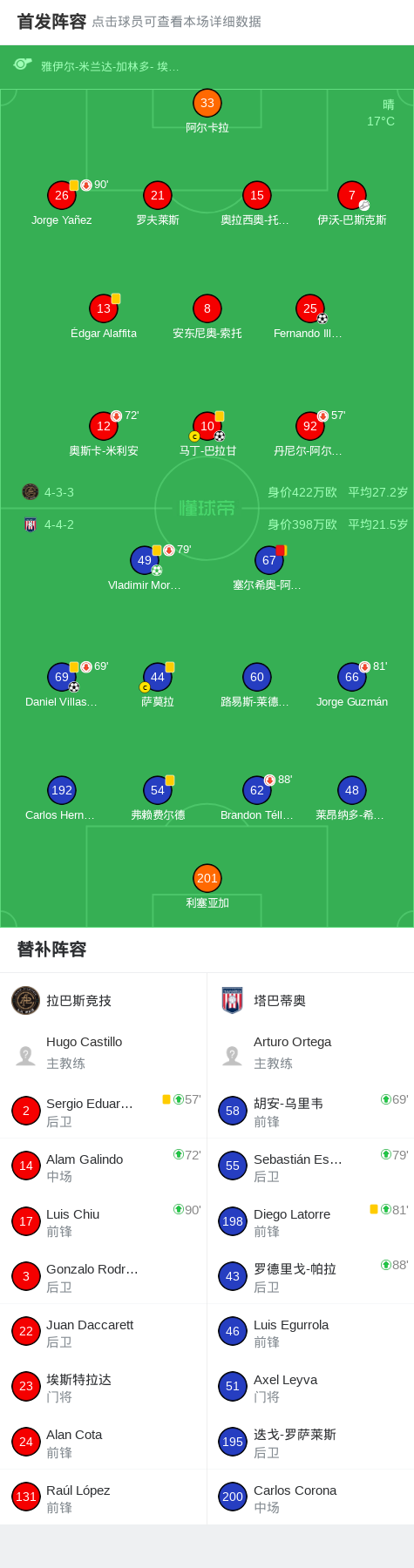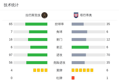 第72分钟,塔巴蒂奥球队塞尔希奥-阿瓜约吃到第二张黄牌。