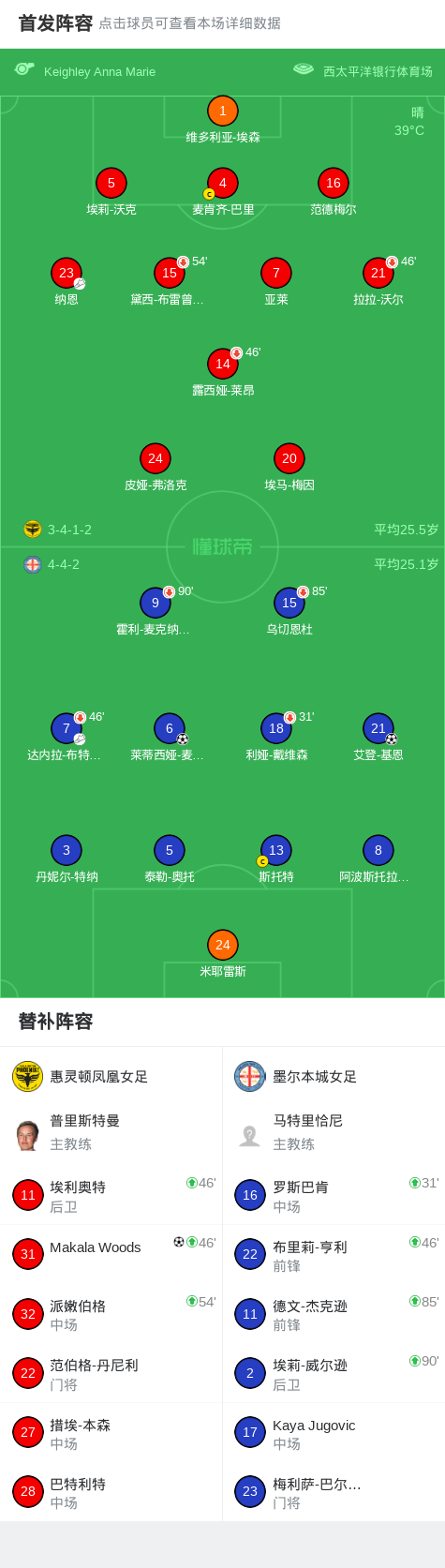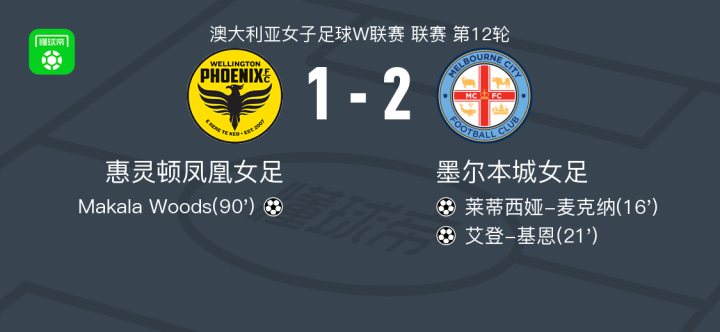 墨尔本城女足2-1惠灵顿凤凰女足,艾登-基恩、莱蒂西娅-麦克纳破门