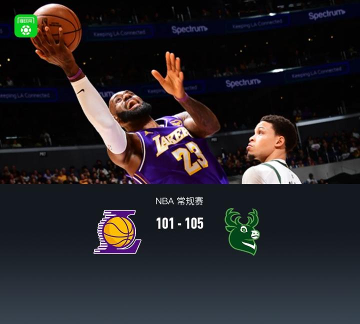 北京时间1月10日NBA 常规赛,洛杉矶湖人对阵密尔沃基雄鹿。上半场湖人便落后10分上下,半场湖人52-61雄鹿,第三节结束湖人仍落后9分,末节湖人詹姆斯带队反扑最后阶段一度反超4分,但最后关键时刻连续三分不中随后冲框被字母哥封盖,雄鹿波特三分造成东契奇6犯毕业领先2分,詹姆斯突破被字母哥再度抢断彻底葬送比赛,最终湖人101-105雄鹿。
