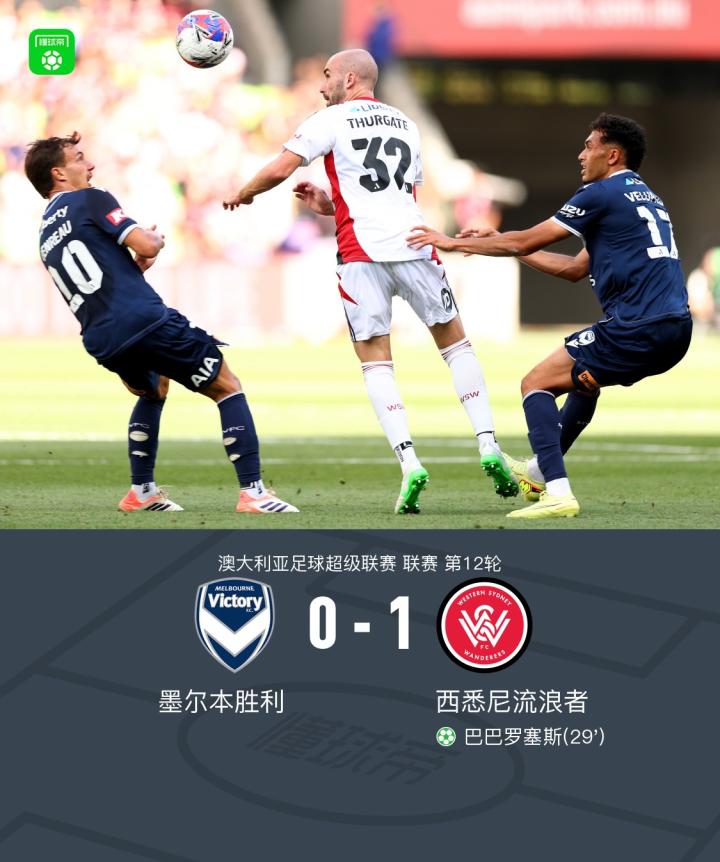 4连胜遭终结!墨尔本胜利0-1西悉尼流浪者,巴巴罗塞斯点射