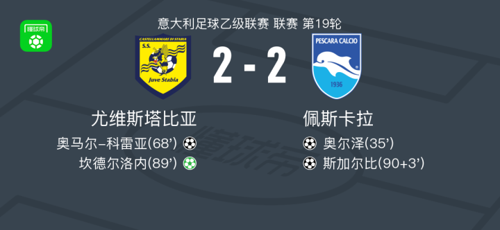 尤维斯塔比亚2-2佩斯卡拉,奥尔泽破门,斯加尔比扳平