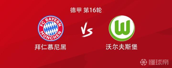 北京时间1月12日0:30,德甲第16轮,拜仁主场对阵沃尔夫斯堡。赛前首发公布。