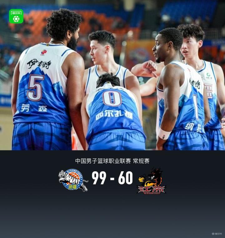第四节新疆冯傲拿下8分,江苏蒋浩然拿下9分,最终新疆99-60战胜江苏