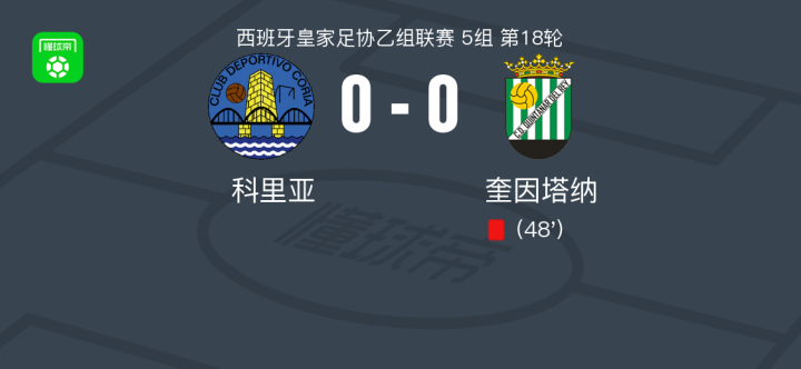 科里亚0-0奎因塔纳,难分伯仲遭西协乙4连平战报bot @懂球帝01-12 01:51北京时间1月12日西班牙皇家足协乙组联赛 5组 第18轮,科里亚主场对阵奎因塔纳。最终比分科里亚 0-0 奎因塔纳。点击查看本场比赛详细数据>>点击查看西协乙完整积分榜>>精彩瞬间第48分钟,奎因塔纳球队吃到红牌。 技术统计 展开更多