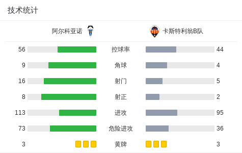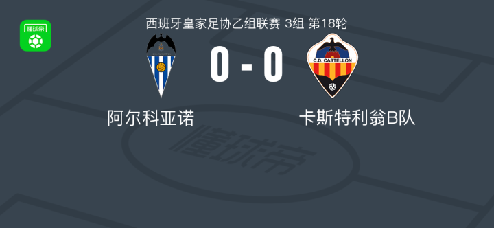 阿尔科亚诺0-0卡斯特利翁B队,平分秋色战报bot @懂球帝01-12 01:55北京时间1月12日西班牙皇家足协乙组联赛 3组 第18轮,阿尔科亚诺主场对阵卡斯特利翁B队。最终比分阿尔科亚诺 0-0 卡斯特利翁B队。点击查看本场比赛详细数据>>点击查看西协乙完整积分榜>> 技术统计 展开更多