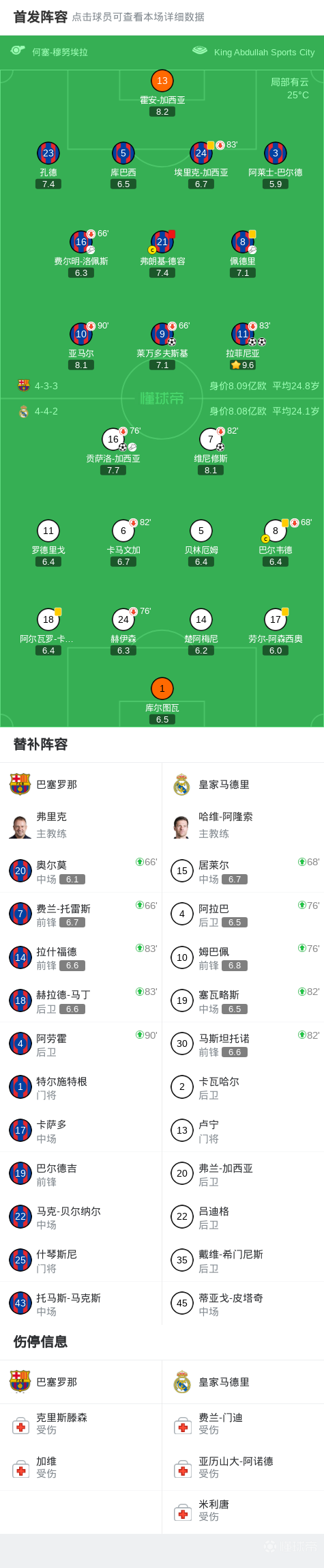 西超杯巴萨3-2皇马夺冠,拉菲尼亚双响,维尼修斯一条龙破门