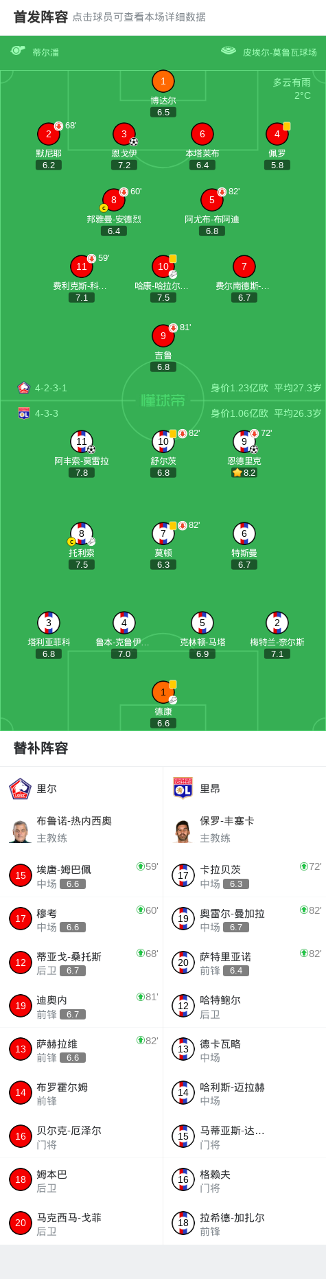 里昂2-1里尔,莫雷拉闪击,恩德里克破门