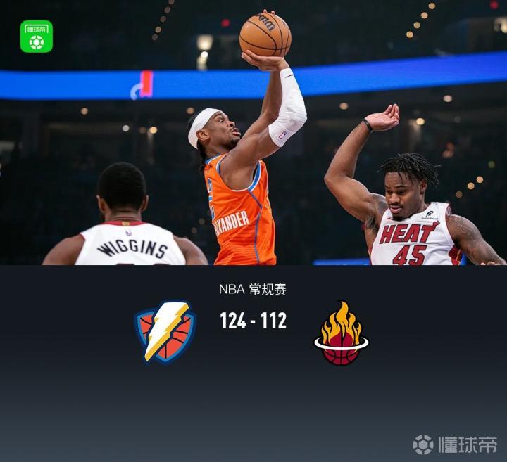 雷霆124-112击败热火,亚历山大29+8,维金斯23+5
