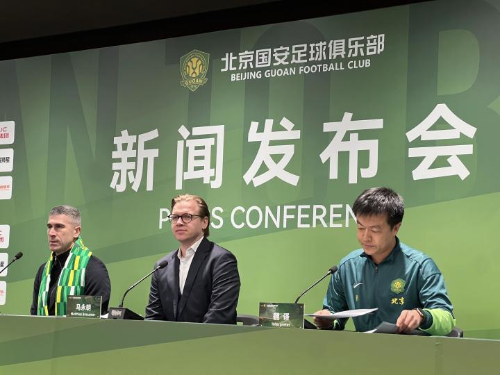 懂球帝现场报道,北京时间1月12日,北京国安新任体育总经理马永明及新任主教练蒙哥马利的上任新闻发布会在北京工人体育场进行。
