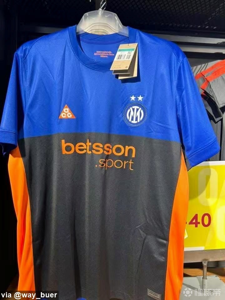 耐克为国米推出的25-26赛季第四球衣采用醒目的撞色设计。球衣上半部分为蓝色,中下半部分则为黑色。耐克还将醒目的橙色队徽融入到这款球衣中。
