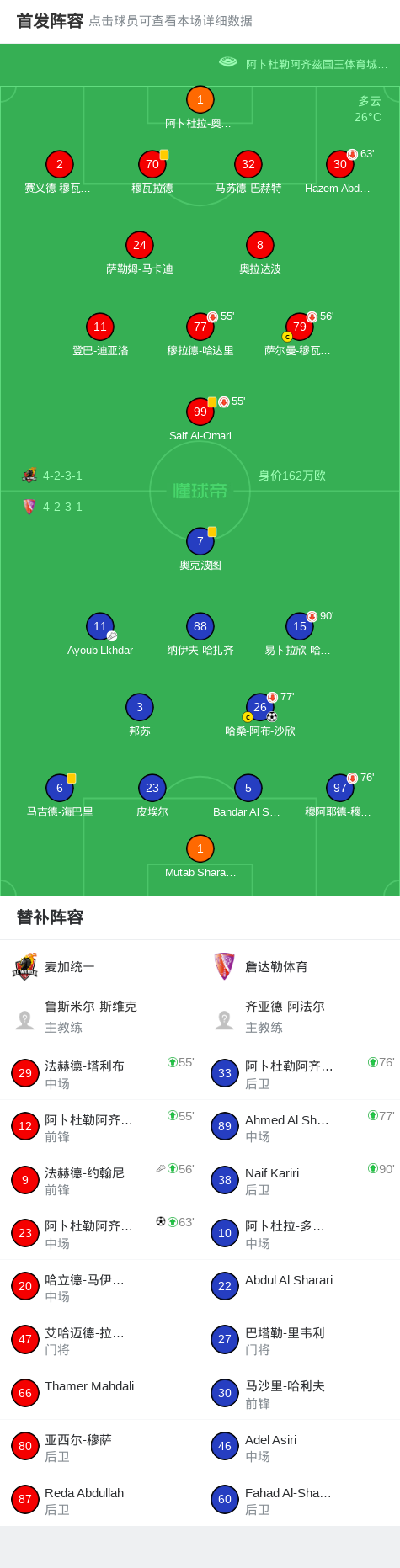 第66分钟,麦加统一球员法赫德-约翰尼助攻阿卜杜勒阿齐兹-马伊拉希打入一球。