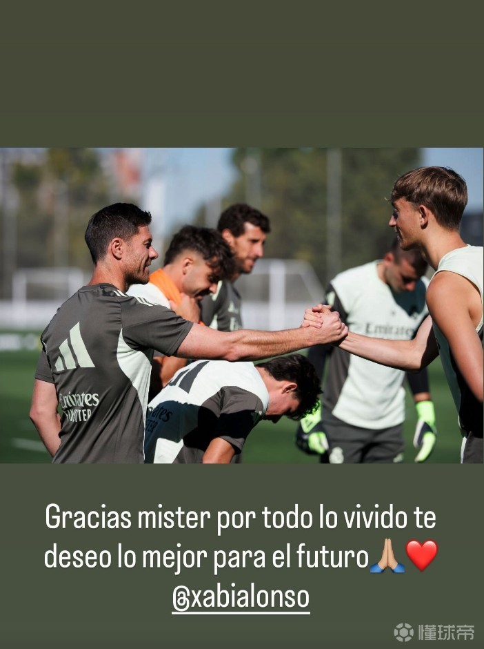 在哈维-阿隆索离任后,皇马后卫赫伊森在社交媒体发布了一张他和阿隆索在训练场握手的照片,并写道:“感谢你带给我们的一切经历,教练,祝你未来一切顺利 🙏🏼❤️”