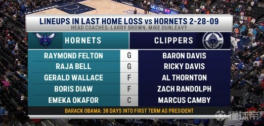 在比赛结束后,转播方晒出了两队交手纪录的数据:上一次黄蜂队在客场击败快船还要追溯到2009年2月28日,下方注脚则调侃道“彼时奥巴马刚刚上任美国总统38天”。自那之后,黄蜂队已经客场面对快船16连败。