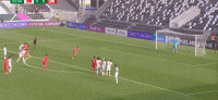 第27分钟,萨夫万尝试射门,皮球折射后击中顶网