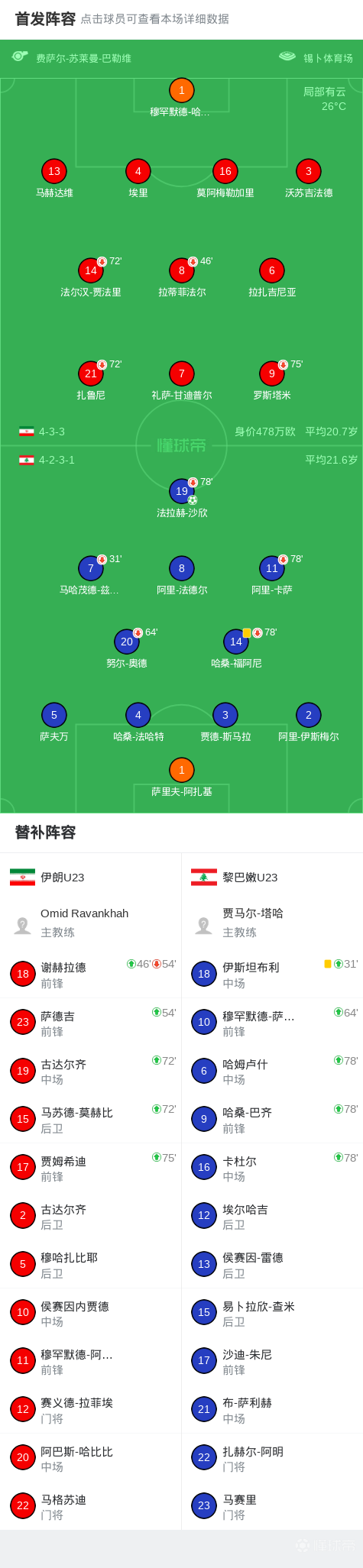 在1月13日进行的U23亚洲杯小组赛第三轮比赛中,伊朗U23与黎巴嫩U23展开对决。比赛中,黎巴嫩U23球员法拉赫-沙欣主罚点球命中,为球队取得领先。凭借此次进球,黎巴嫩U23保持优势至终场。最终,伊朗U23两度中框0-1黎巴嫩U23双双出局。