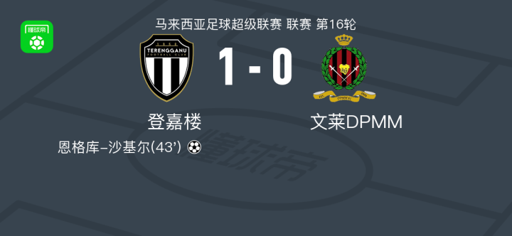 北京时间1月13日,马来西亚足球超级联赛第16轮,登嘉楼坐镇主场迎战文莱DPMM。比赛中,登嘉楼球员恩格库-沙基尔攻入全场唯一进球,帮助球队取得领先。凭借这一进球,登嘉楼最终以1比0战胜对手,全取三分。