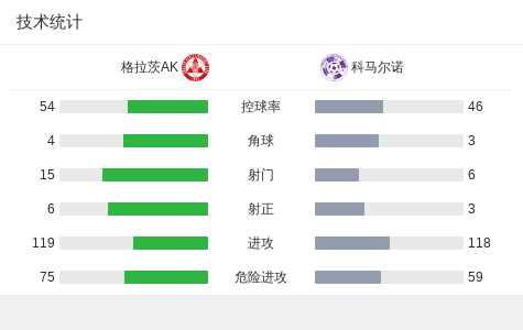 格拉茨AK1-1科马尔诺,沙廷先拔头筹,马希凯救主